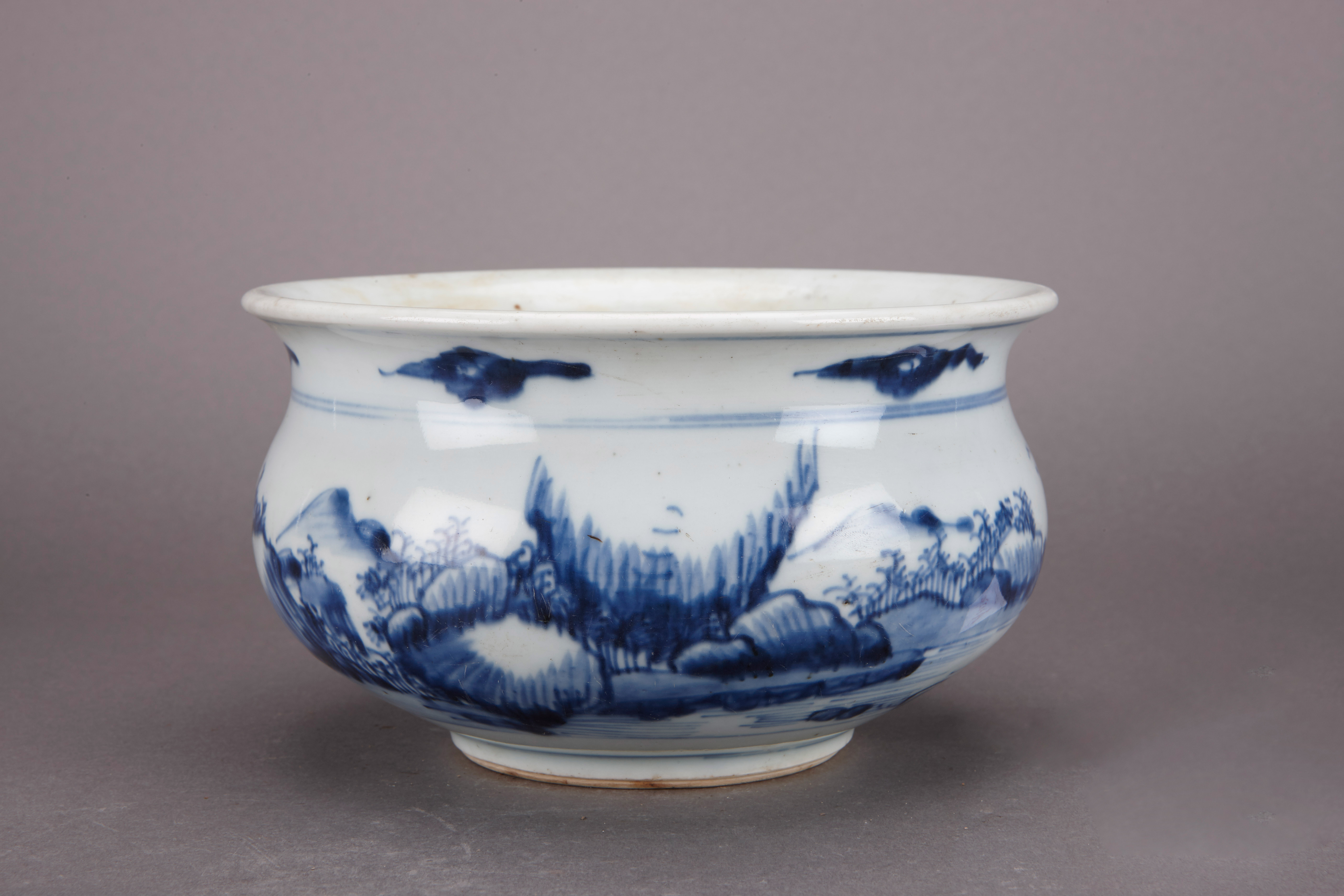 名称:清康熙青花山水纹三足炉