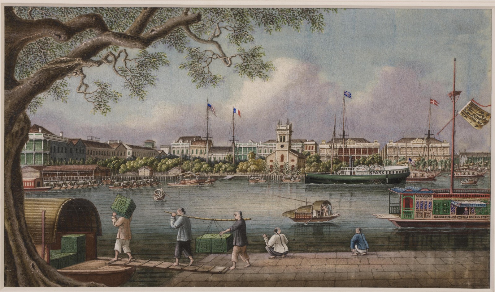 名称:十九世纪佚名画家绘珠江南岸运茶图