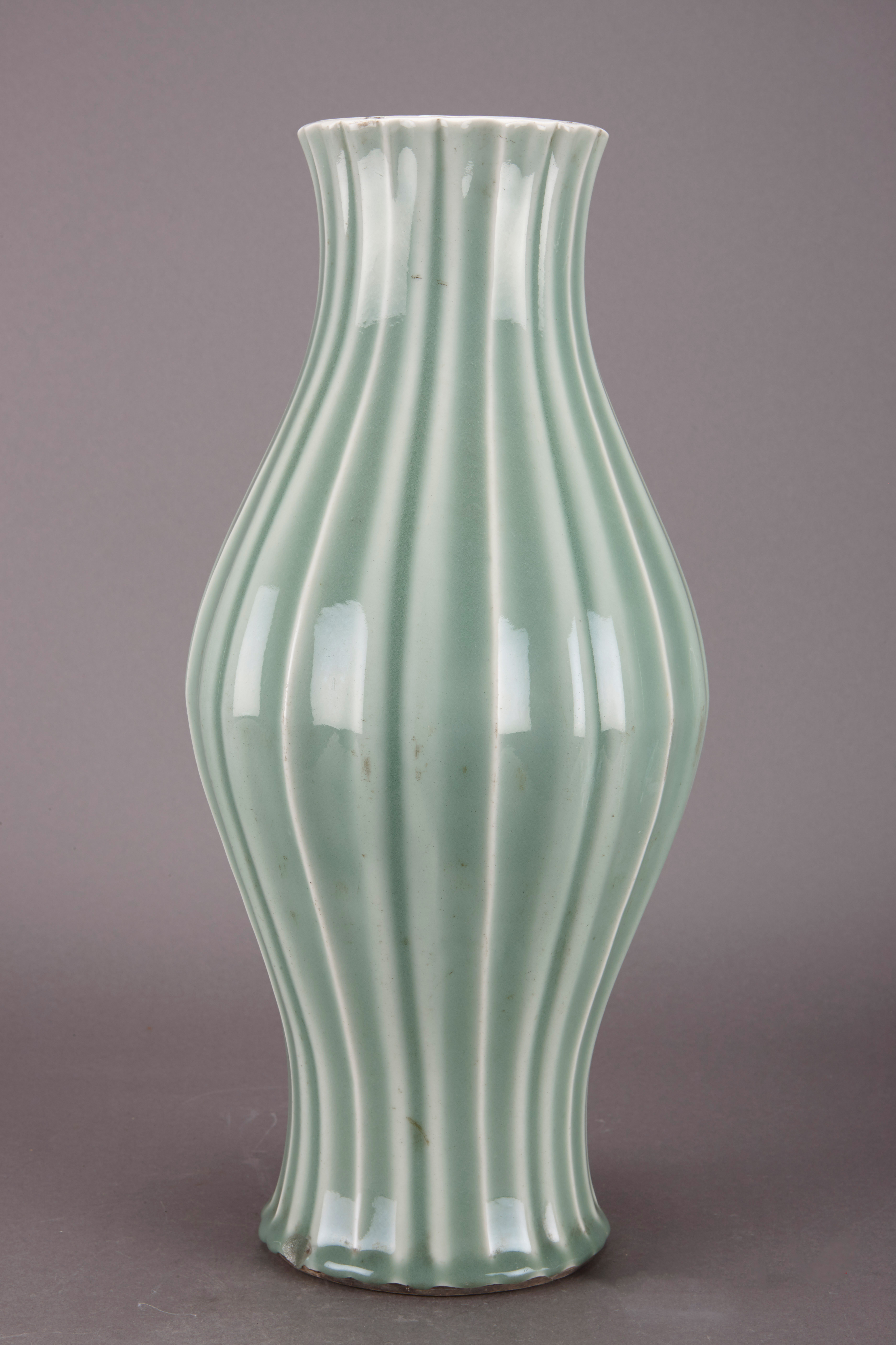 名称:清乾隆青釉条纹橄榄瓶