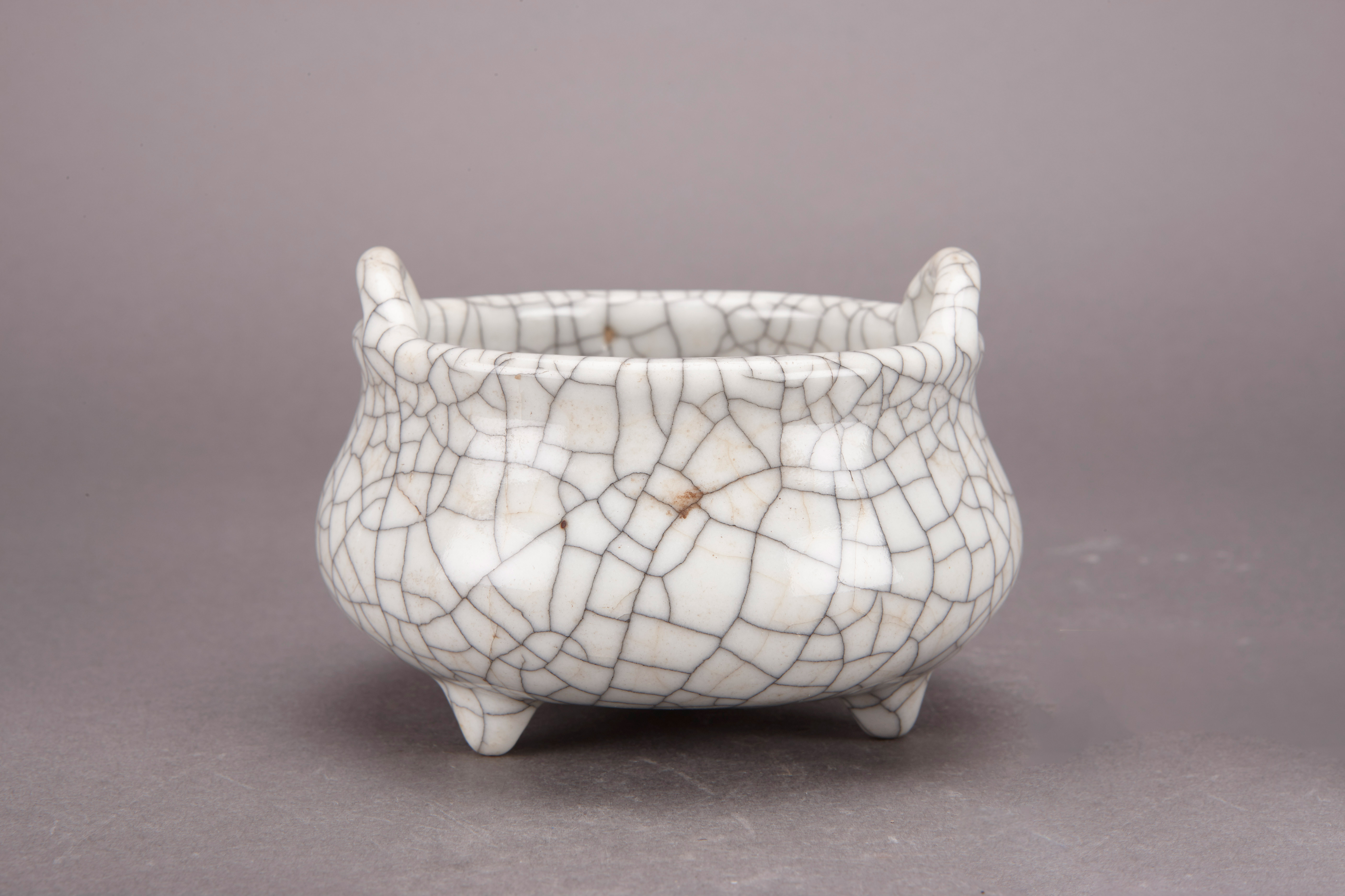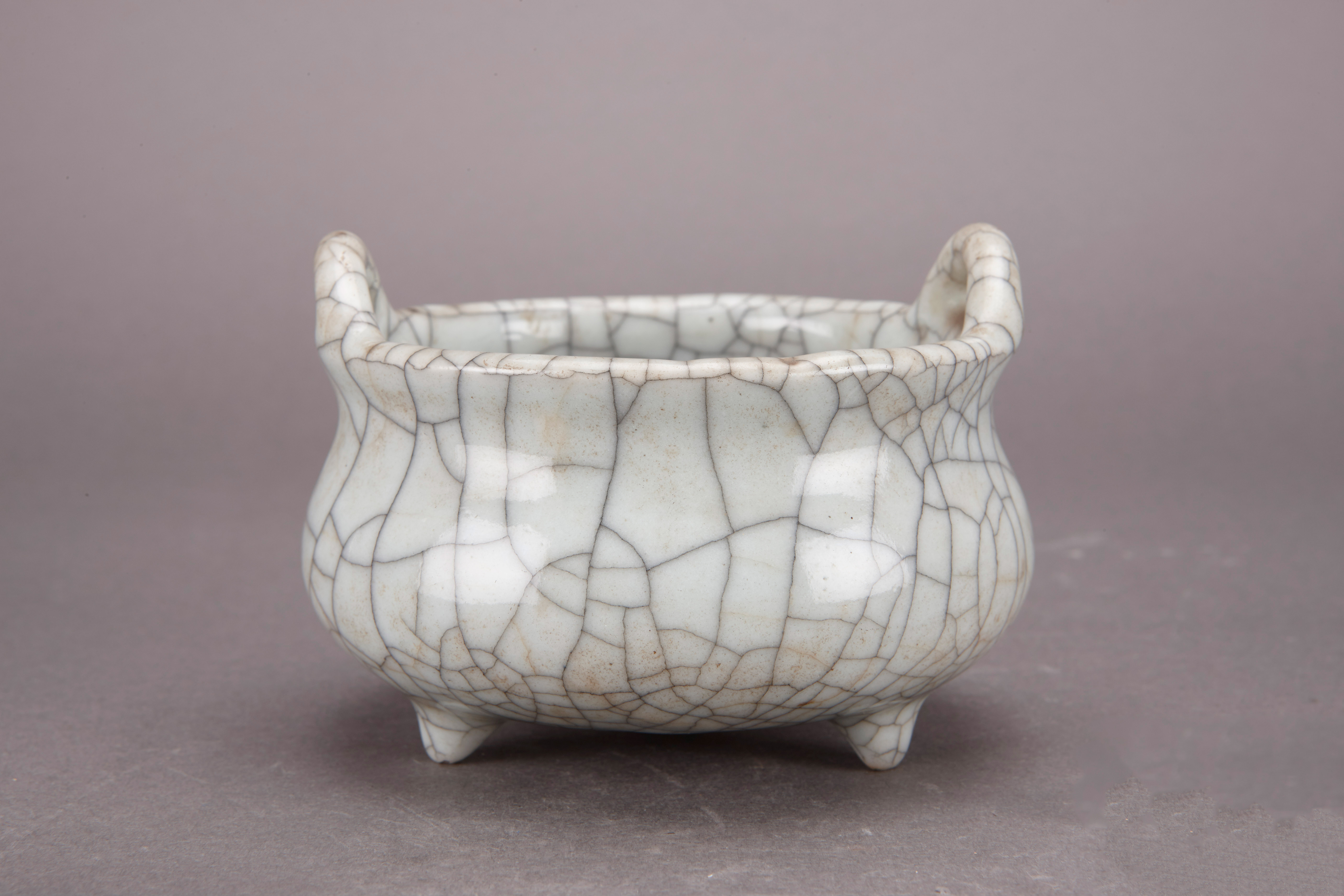 名称:清乾隆青釉开片双耳三足小炉