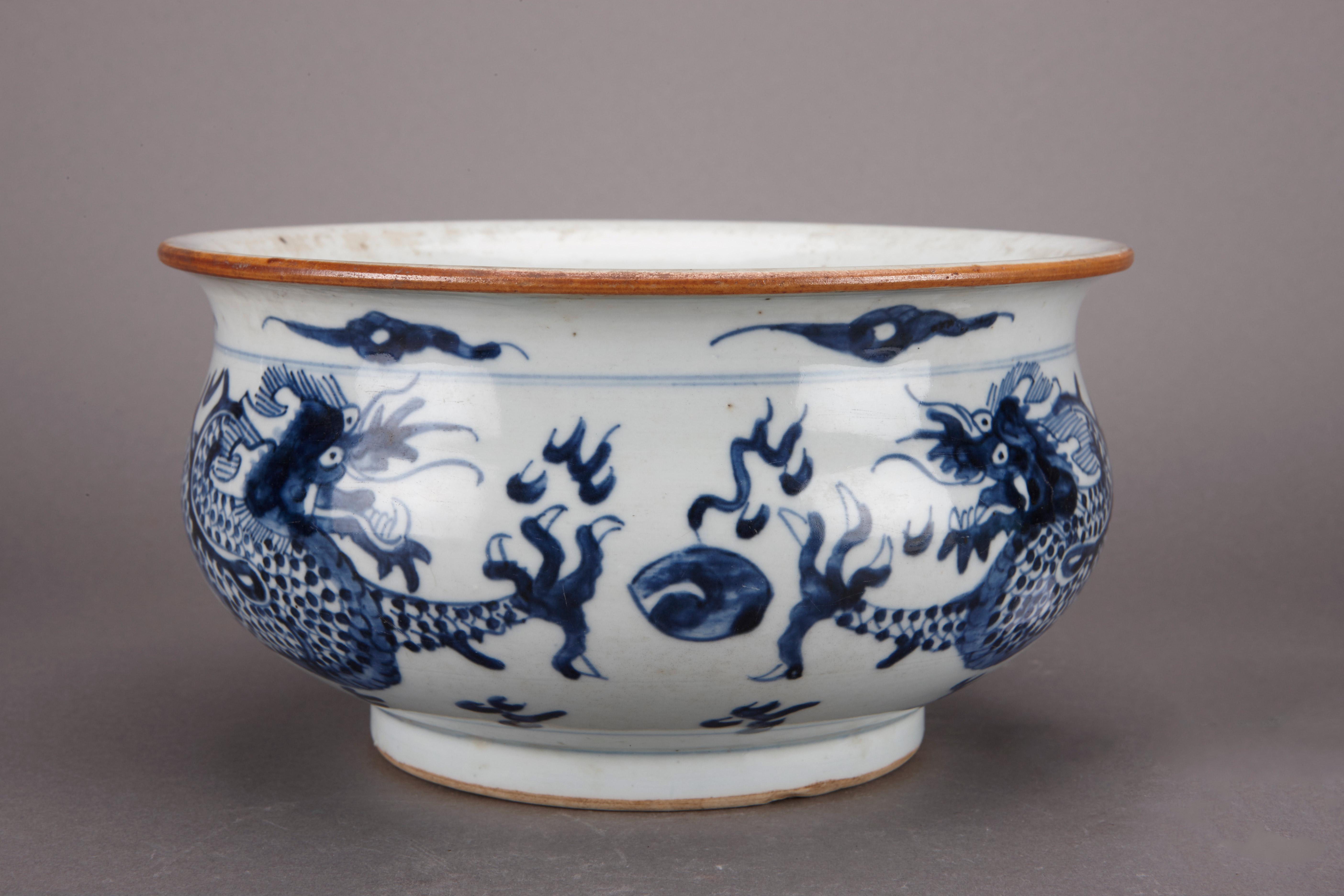 名称:清顺治青花双龙戏珠图香炉