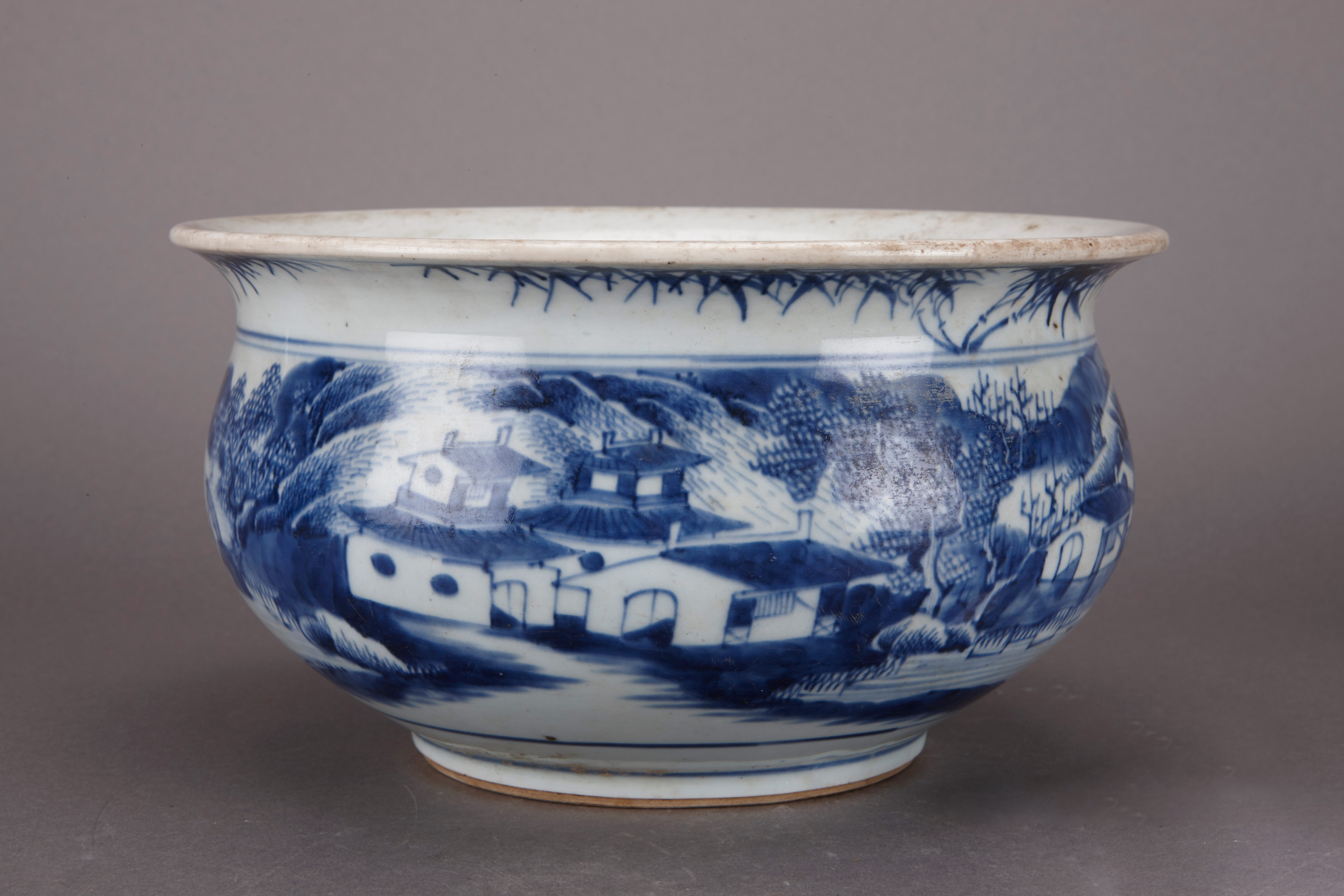 名称:清康熙青花山水人物纹缽
