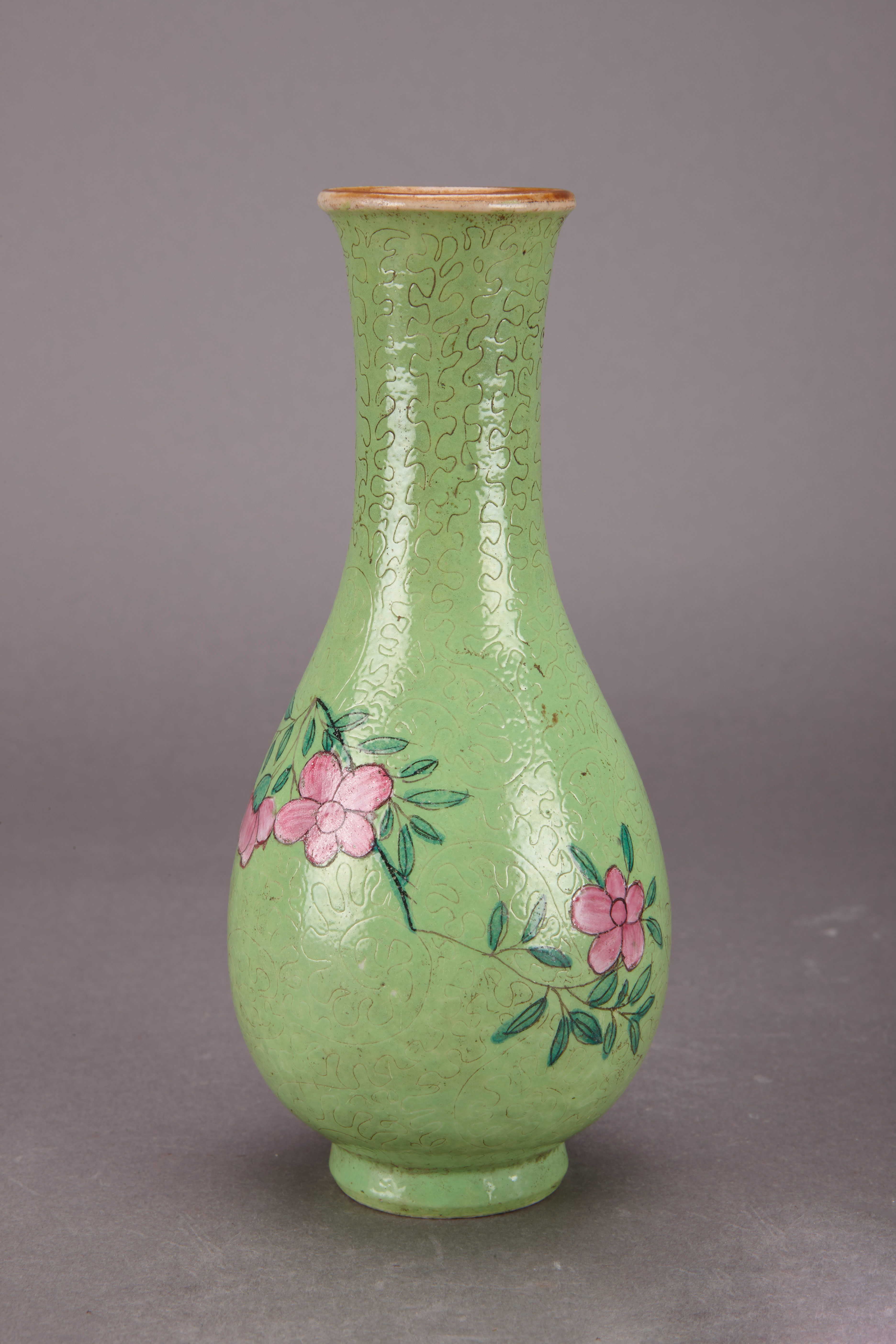 名称:清嘉庆绿地轧道粉彩花卉小胆瓶