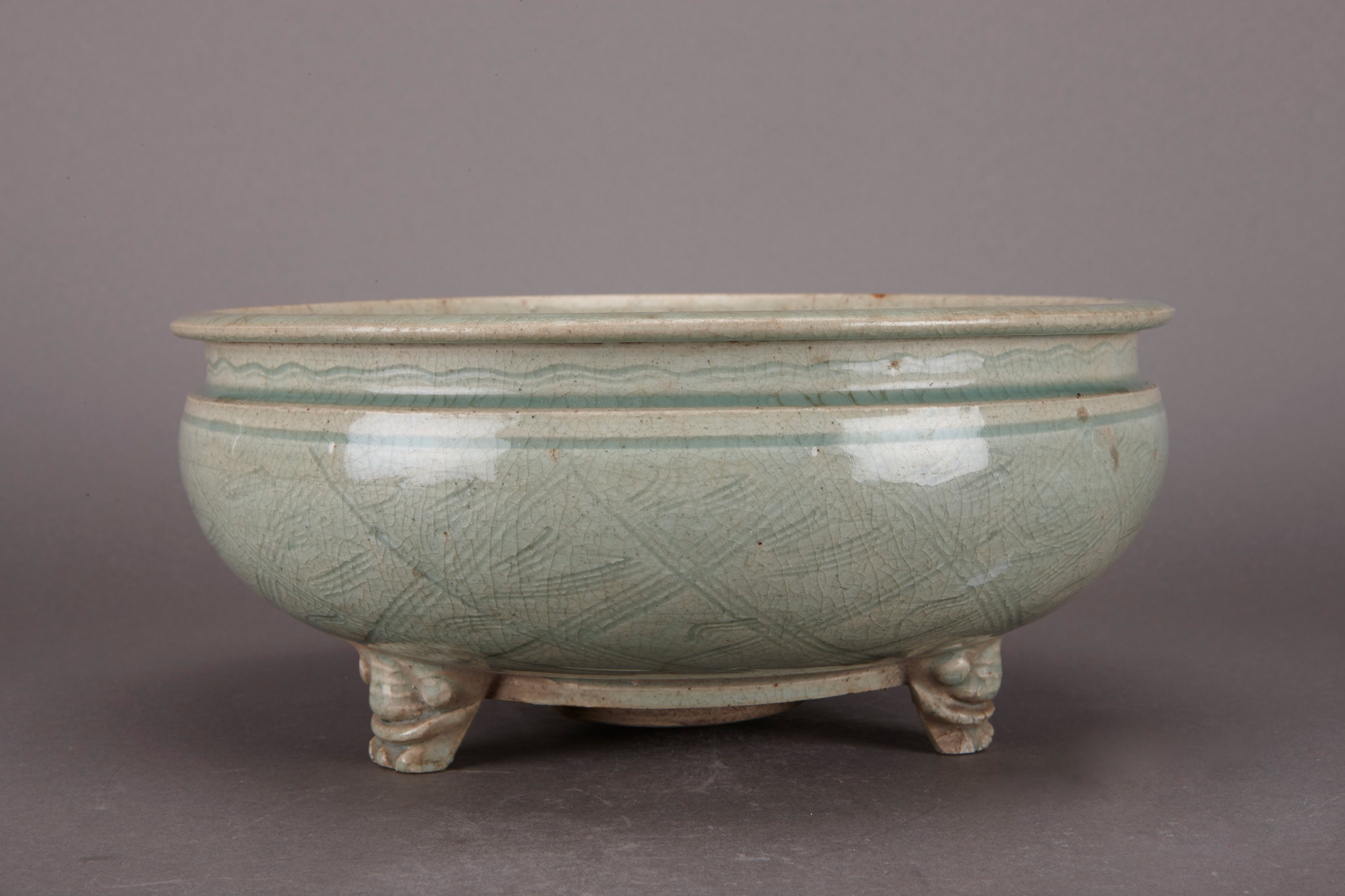 名称:清乾隆青釉开片蟠螭双耳盘口瓶