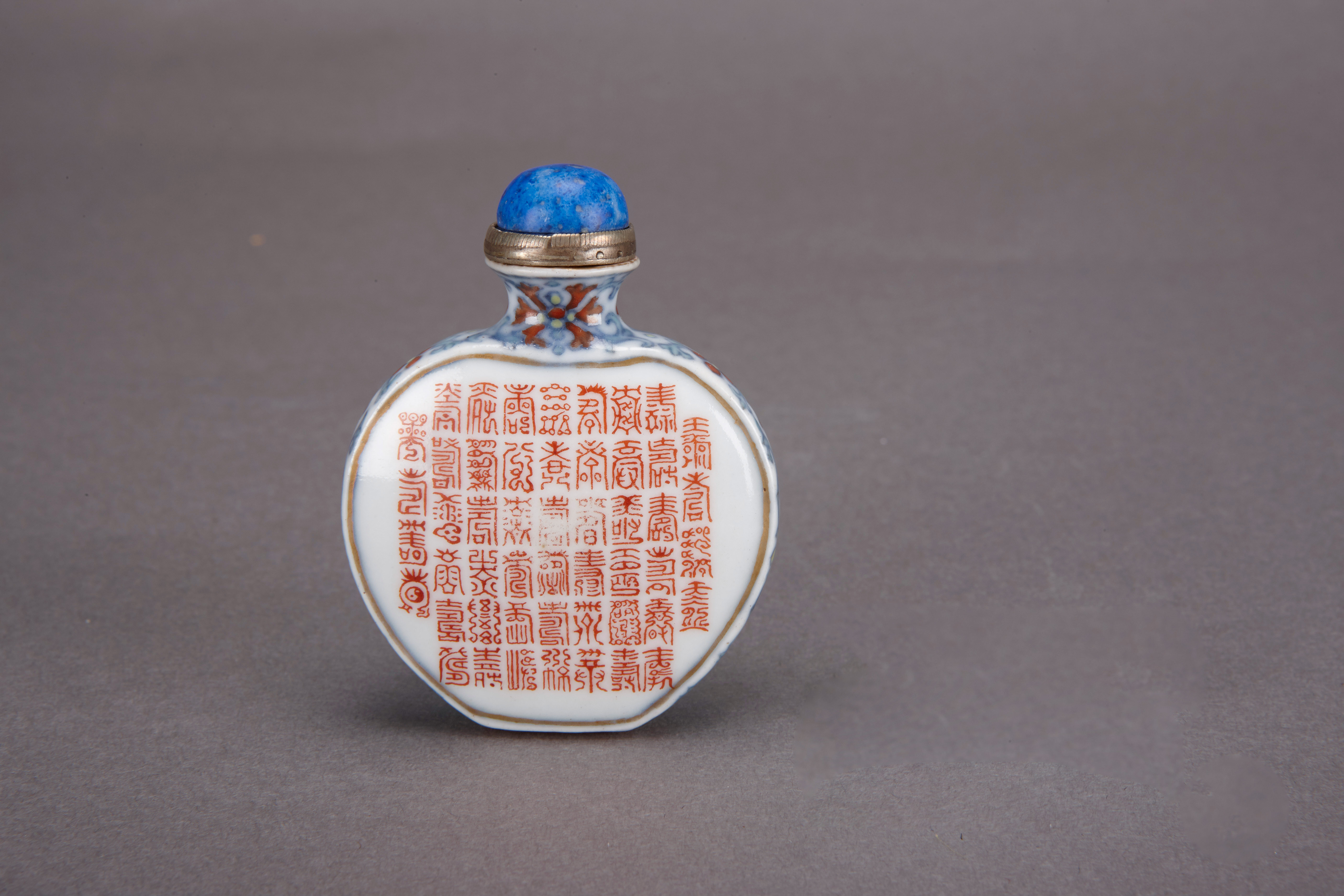 名称:清乾隆青花矾红万寿纹鼻烟壶