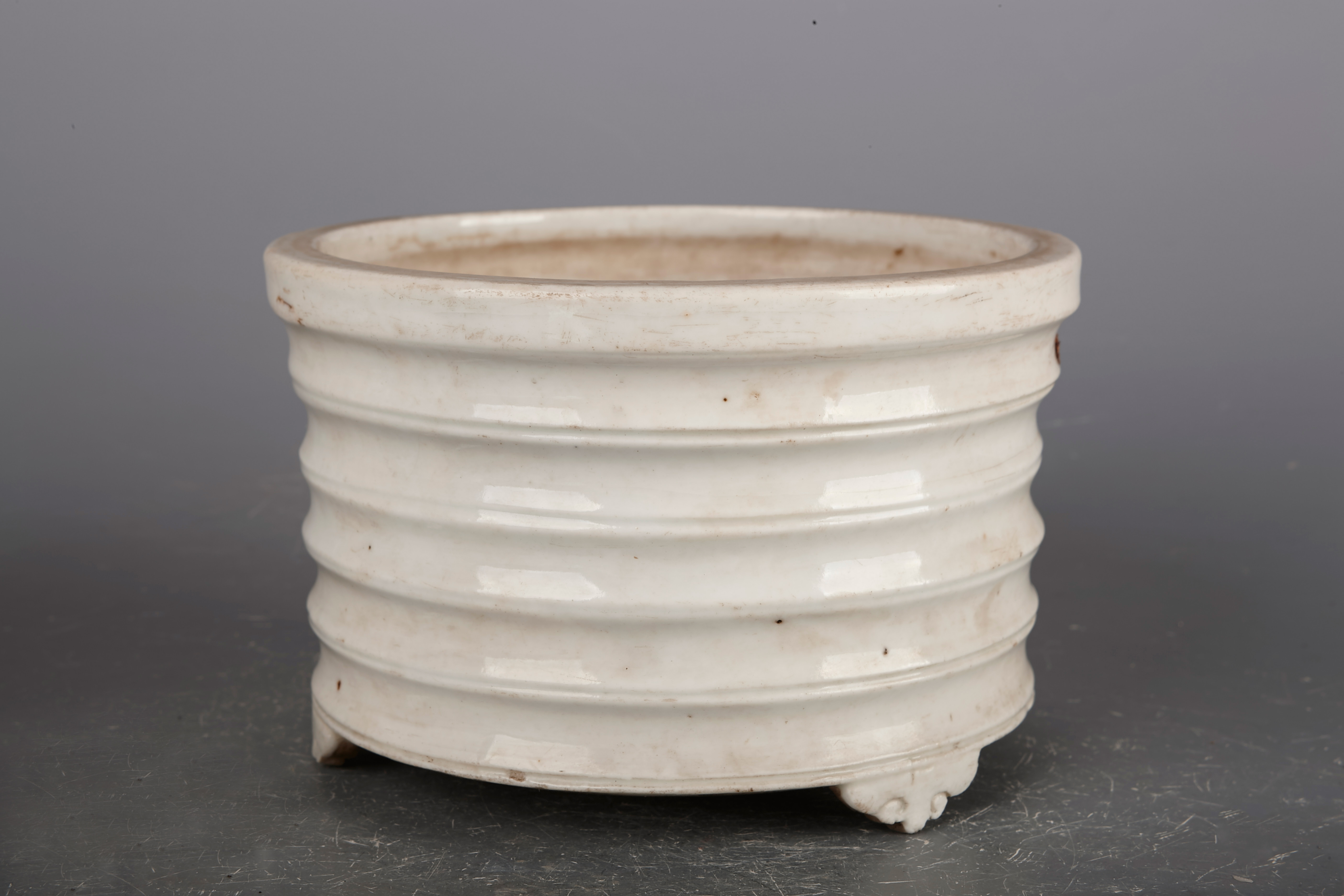 名称:清德化窑白釉弦纹三足炉