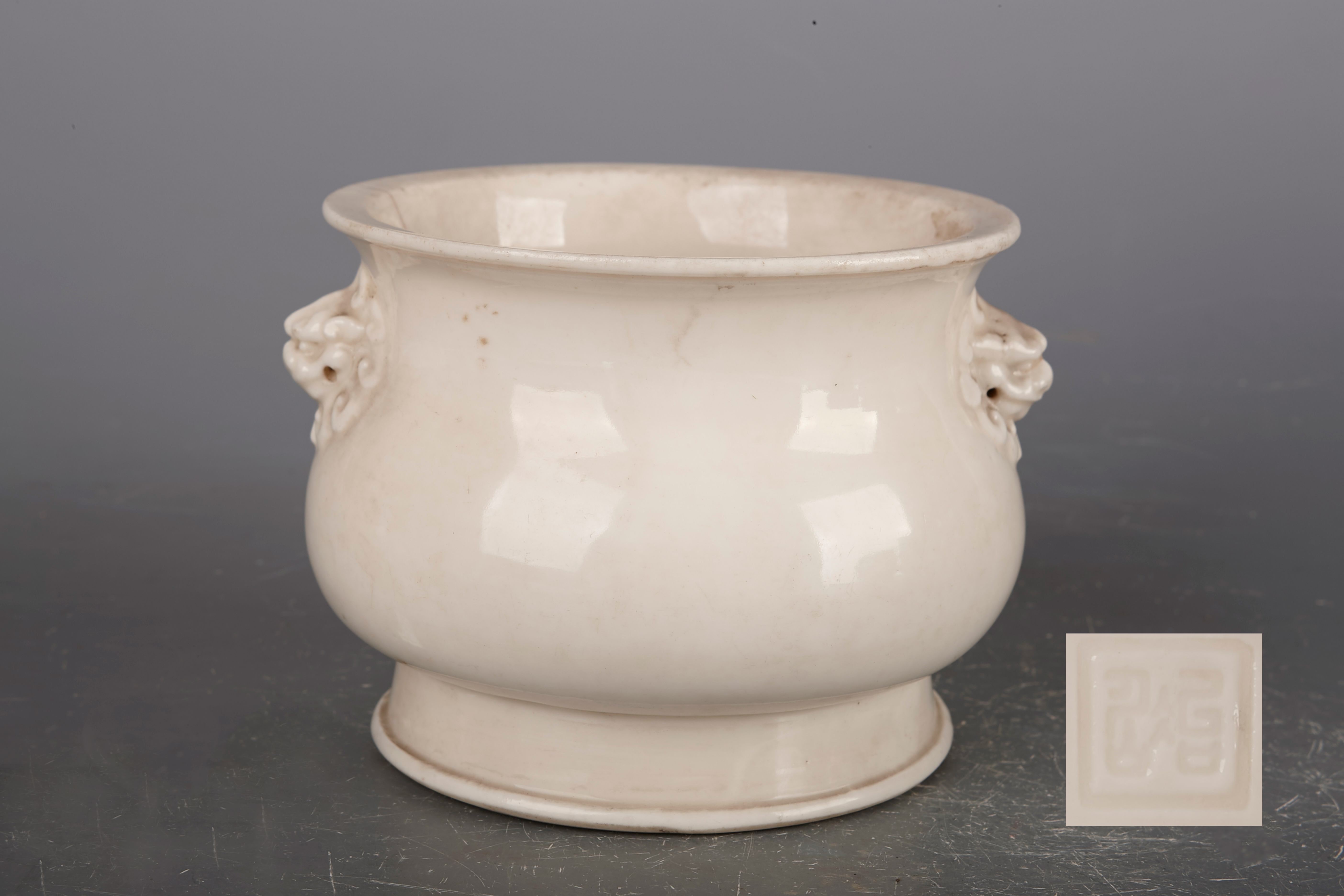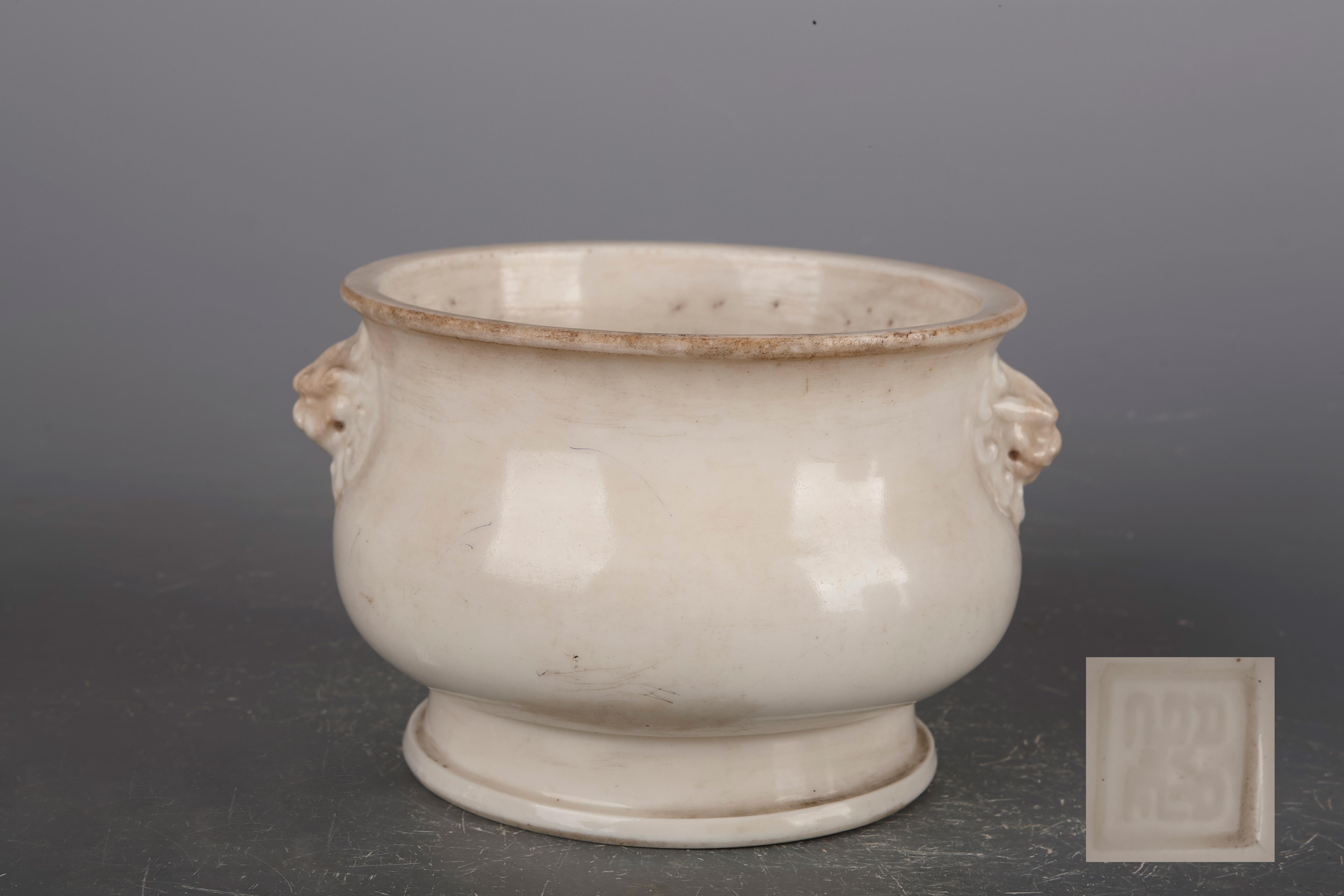名称:清德化窑白釉双兽耳炉