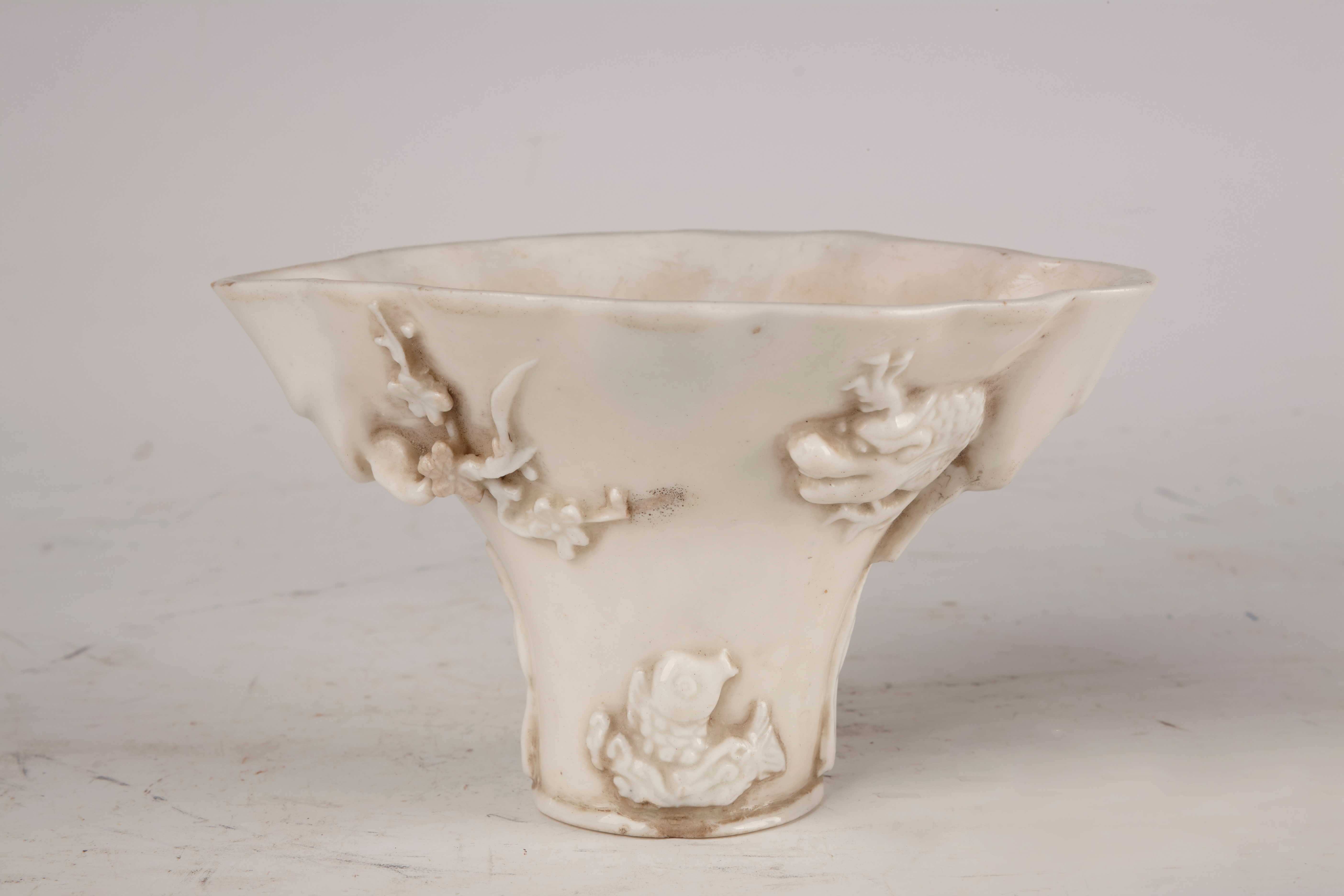 名称:明德化窑白釉鹤寿树头杯