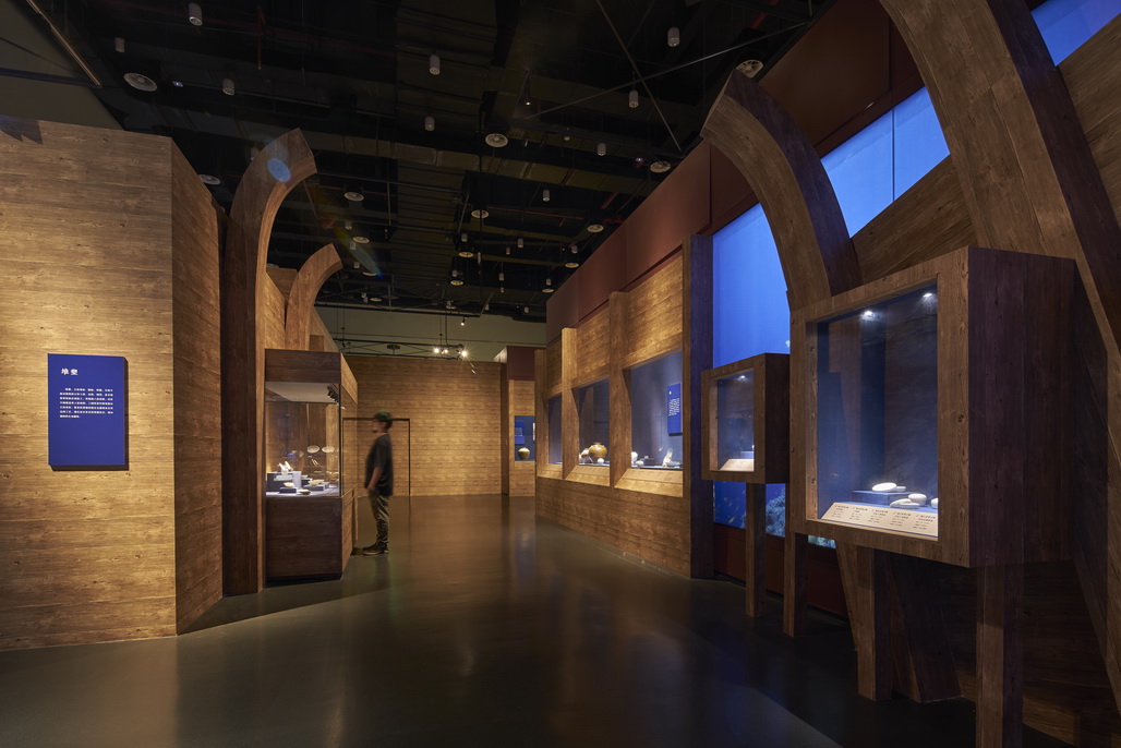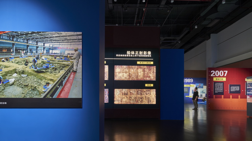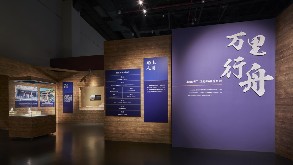 展览开篇首先带领观众穿越时空、遐想八百年前的海上风云瞬间:中国进入南宋时期,受辽金威胁,政府开支日益增大,陆上丝绸之路萎缩。王朝统治者倡导“江海求利,以资国用”,积极发展海上交通,经营海外贸易。此时“中国制造”风靡海外,不幸沉没的“南海I号”沉船船载10余万件船货,就是生动的证明。展览第二部分,通过分门别类展示“南海I号”出水货物,展现当时中国热销海外的商品。商船载有10余万件的器物,其中大部分是东南地区著名外销窑口的陶瓷器,如浙江龙泉窑、江西景德镇窑、福建德化窑、福建磁灶窑等,纯净典雅的单色釉瓷器展现了宋代审美;光艳夺目的金器,风格独特,有阿拉伯风格、宋地风格和辽地风格,雕工精巧,无不显示出当时工匠们的高超手艺。铁器、铜器、锡器等金属器,反映了南宋金属的制造水平……10余万件的船货,其包装方式特别讲究,展览将复原船货包装场景,让观众感受到货物的庞大数量和古人包装货物的智慧。万里行舟,勤劳而智慧的人们在漫长而艰险的航行中,发展出一套独特的生活方式。展览的第三部分,将向观众展示船员生活,为我们拼凑出800多年前的这个“流动的小型社会”。展览的最后部分,以视频、图片、模拟实验等方式,展示30多年来,考古、打捞、文保等社会各界人士,为“南海I号”沉船的调查、打捞、发掘等所作出的杰出贡献。至此,展览从古到今,将历史视角切换到现实工作,再次唤醒观众铭记历史、珍重历史、守护文化遗产的意识。